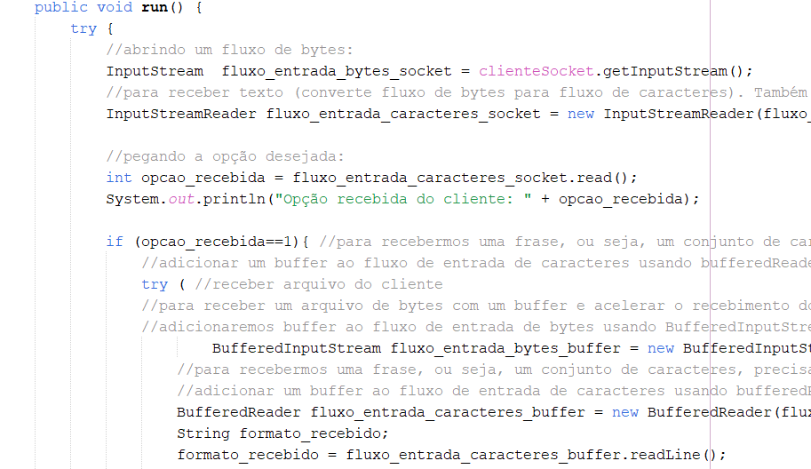 Deixo um pouco de uma aplicação cliente-servidor que fiz usando sockets em Java e Python, e algumas capturas de tela das anotações que eu fiz na época. Ela está disponível no meu GitHub, basta clicar aqui.
