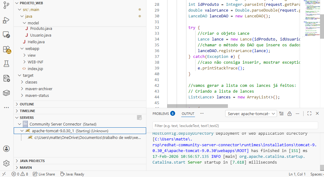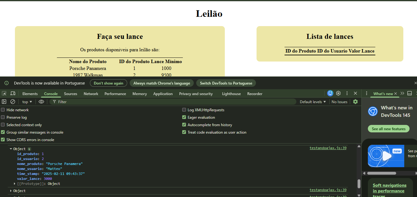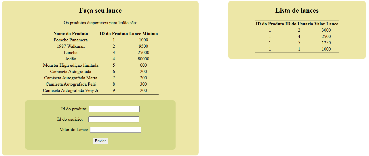 O projeto de Web que exigiu maior complexidade foi o desenvolvimento de um site de leilão, que devia receber lances, ser atualizado em tempo real (AJAX), guardar em um banco de dados todos os lances e os produtos disponíveis, utilizar a arquitetura MVC e o padrão de projeto DAO. O resultado está ao lado e o projeto está disponível aqui.